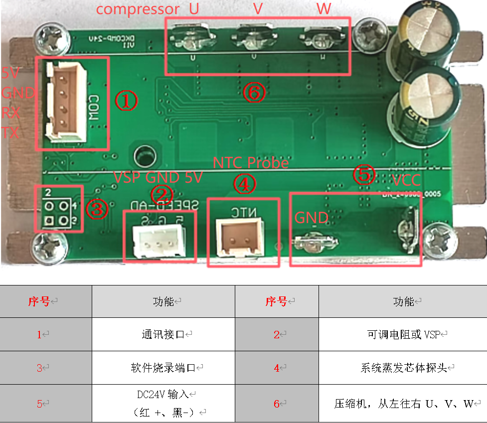 控制器的接口:UART接口X1 / 温度传感器接口 X 1个 / VSP调速接口 X 1个 或 电位器调速接口 X 1个 /。